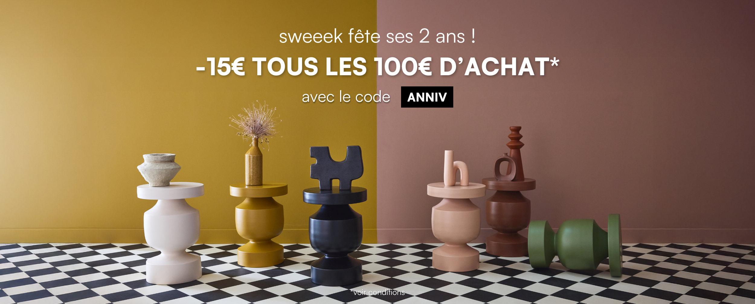 Spécialiste de l'aménagement de votre extérieur depuis 2009, sweeek (auparavant Alice’s Garden) vous propose aussi une gamme de mobilier design pour l’aménagement intérieur : canapé tendance, fauteuil, table basse, meuble vinyle et meuble TV pour meubler votre salon. Côté cuisine et salle à manger, buffet, table à manger ou chaises et tabourets trouveront facilement leur place dans l'intérieur de votre maison pour créer un cocon familial agréable. Besoin de meubles pour votre chambre : lit, tête de lit, table de chevet, console et commode seront vos alliés déco pour profiter d’une pièce propice au repos, dans un style scandinave, contemporain ou industriel.