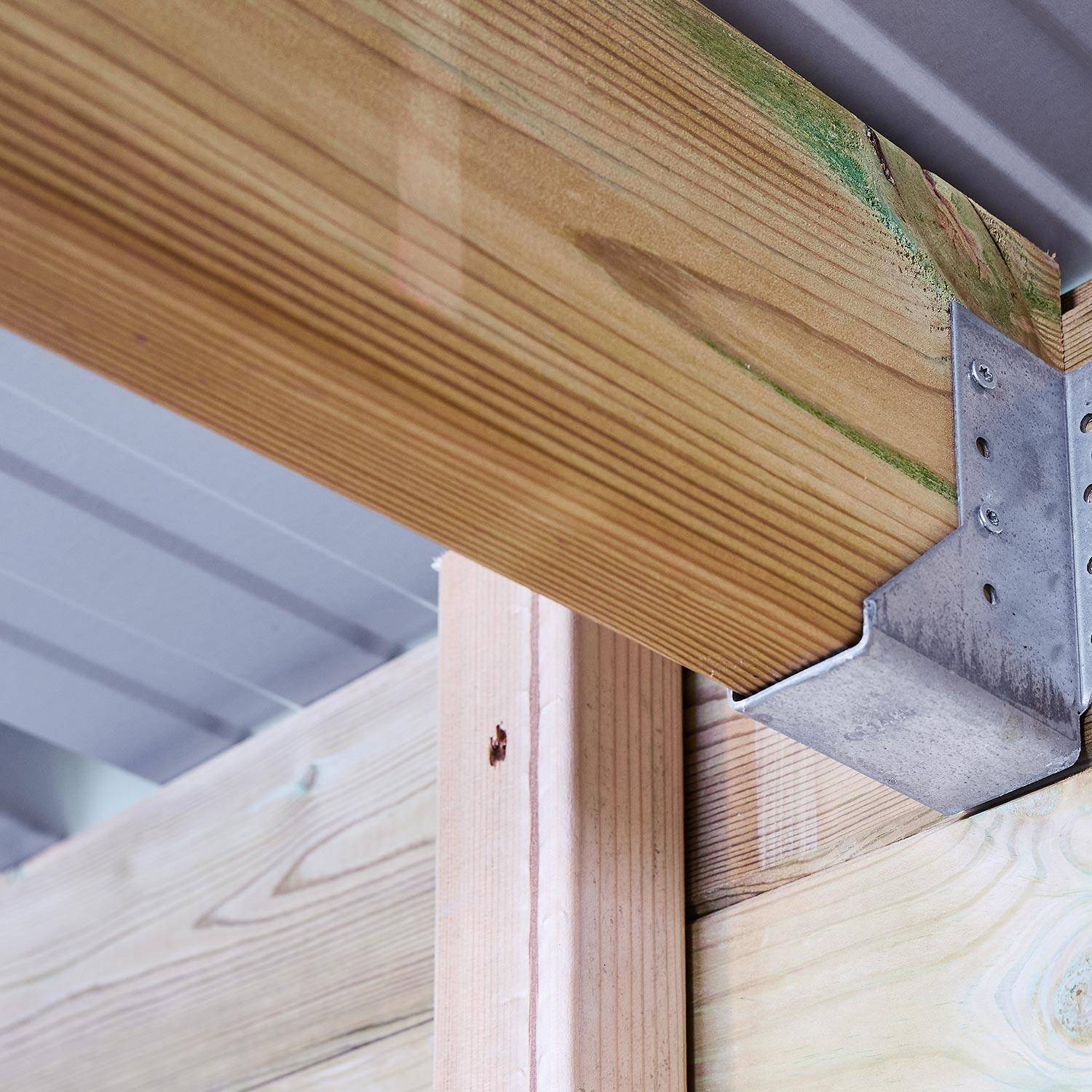 Pour son bon vieillissement, le bois de l'abri est d'ailleurs traité autoclave de classe 3. Il a donc bénéficié d'un traitement en profondeur qui le protège des agressions biologiques (insectes et champignons). Ceci rend le bois imputrescible. Néanmoins, l'autoclave est connu pour protéger le bois d'un point de vue mécanique et non esthétique. Pour éviter que la couleur de votre abri évolue vers le gris, il faut alors l'entretenir. La toiture en bac acier 63/100 de cet abri lui offre quant à elle, un ensemble solide et résistant.
