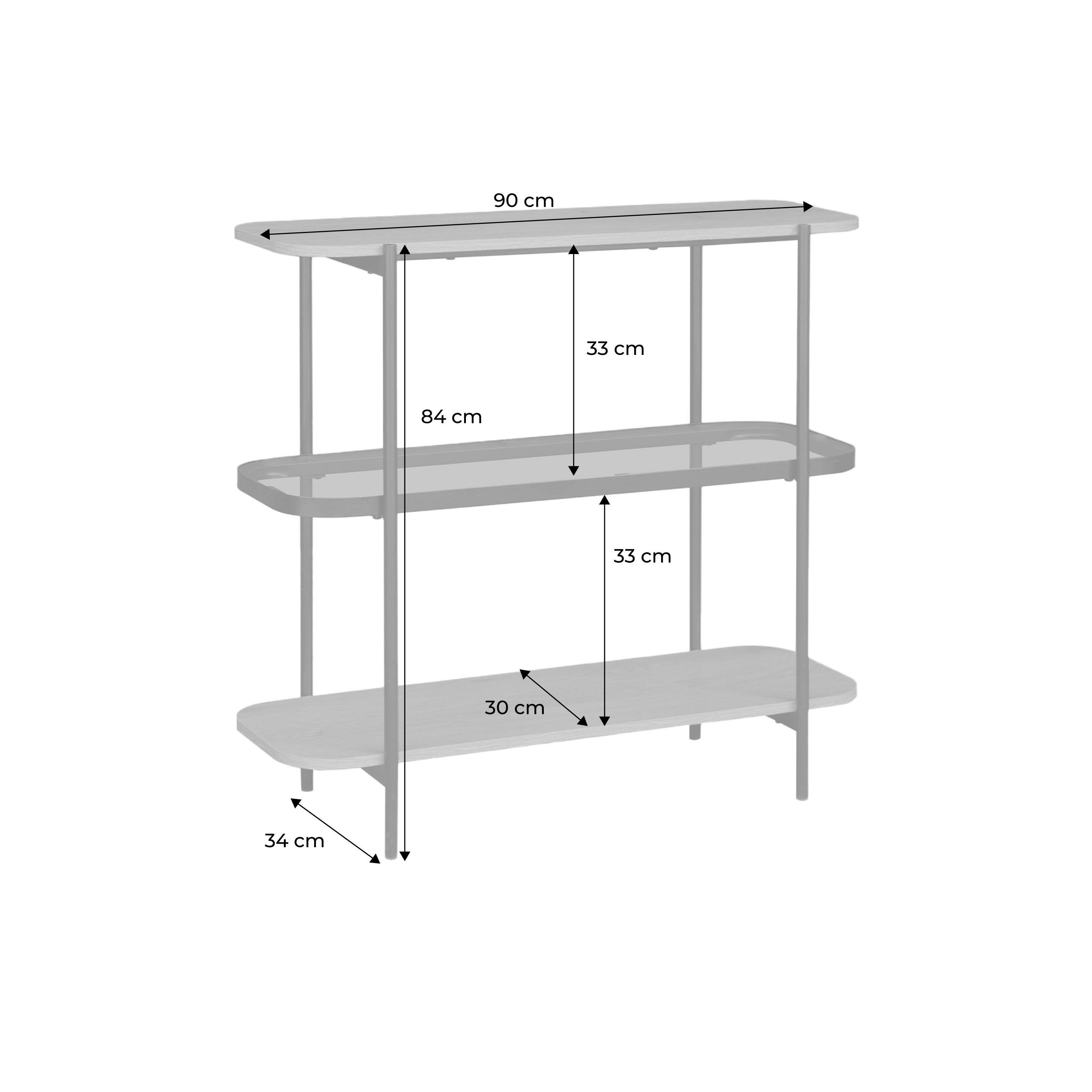 Etagère bibliothèque verre, décor bois et métal 3 niveaux
