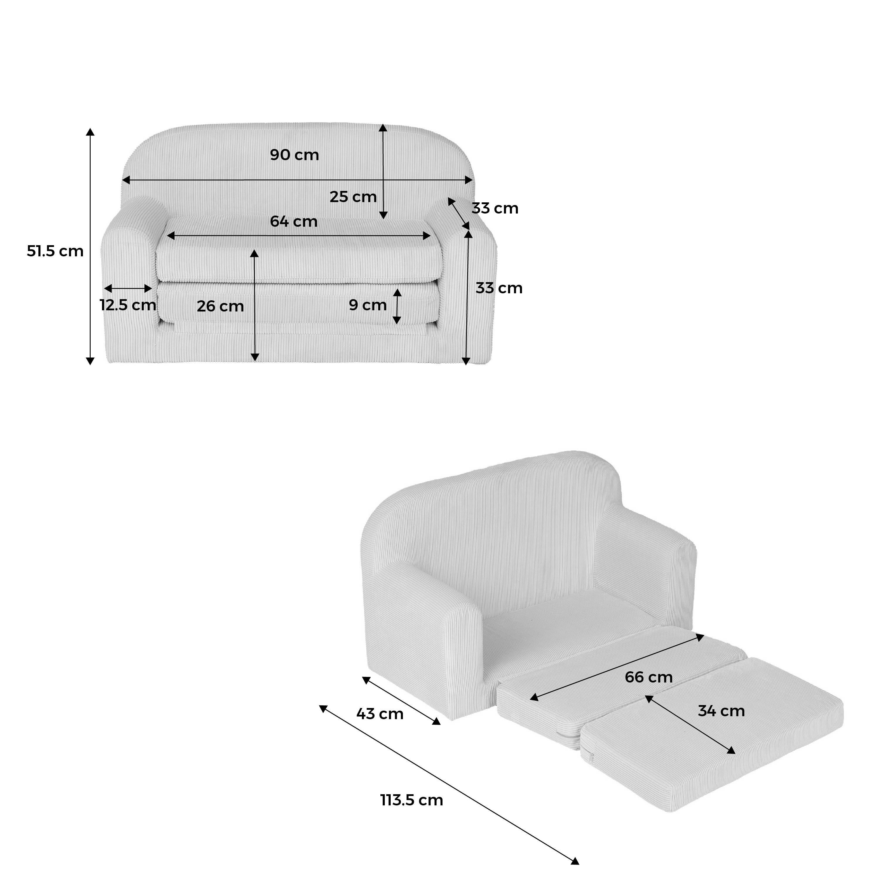 Canapé lit enfant velours côtelé dépliable