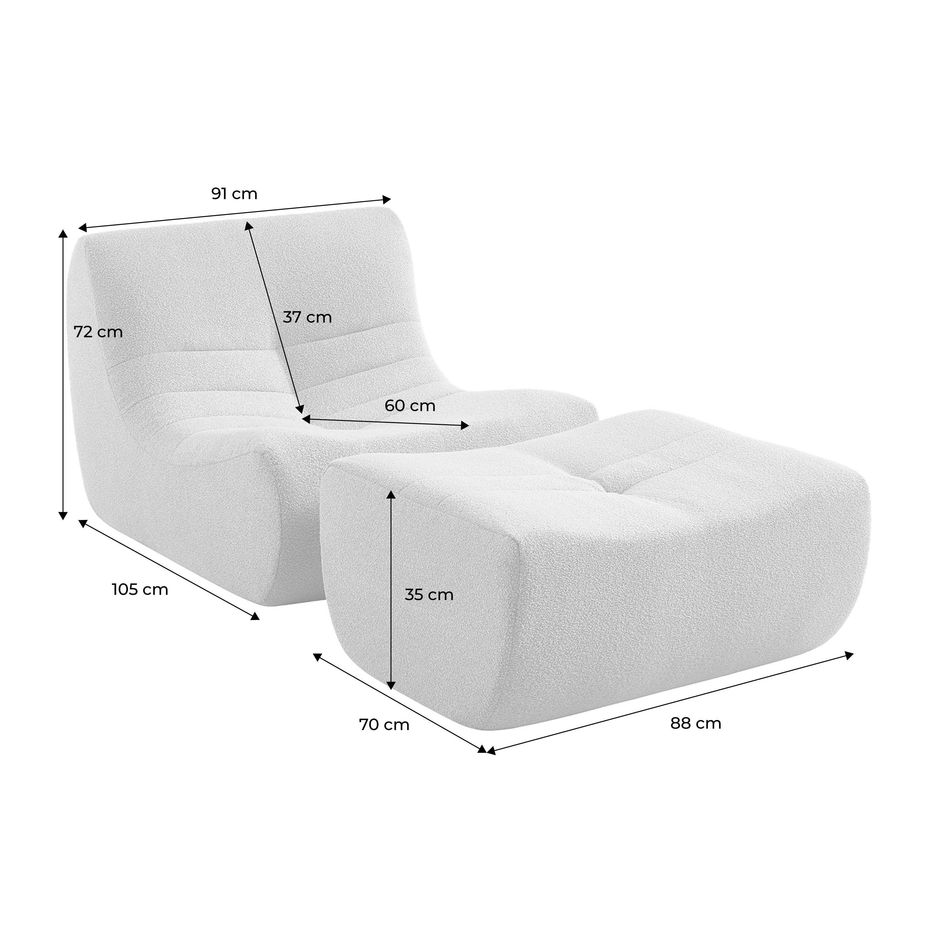 Chauffeuse bouclette texturée 1 place avec repose pieds