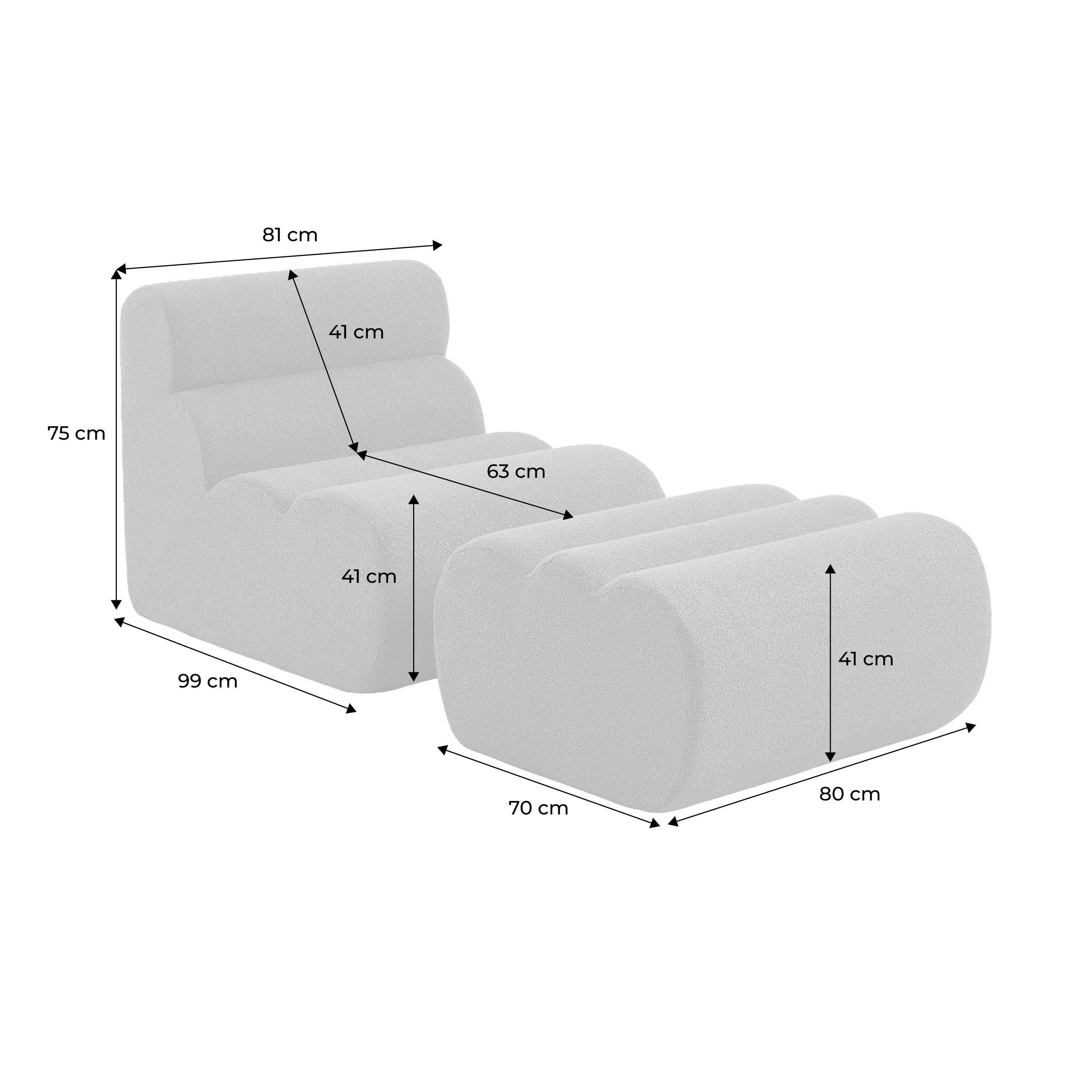 Chauffeuse bouclette texturée 1 place avec repose pieds
