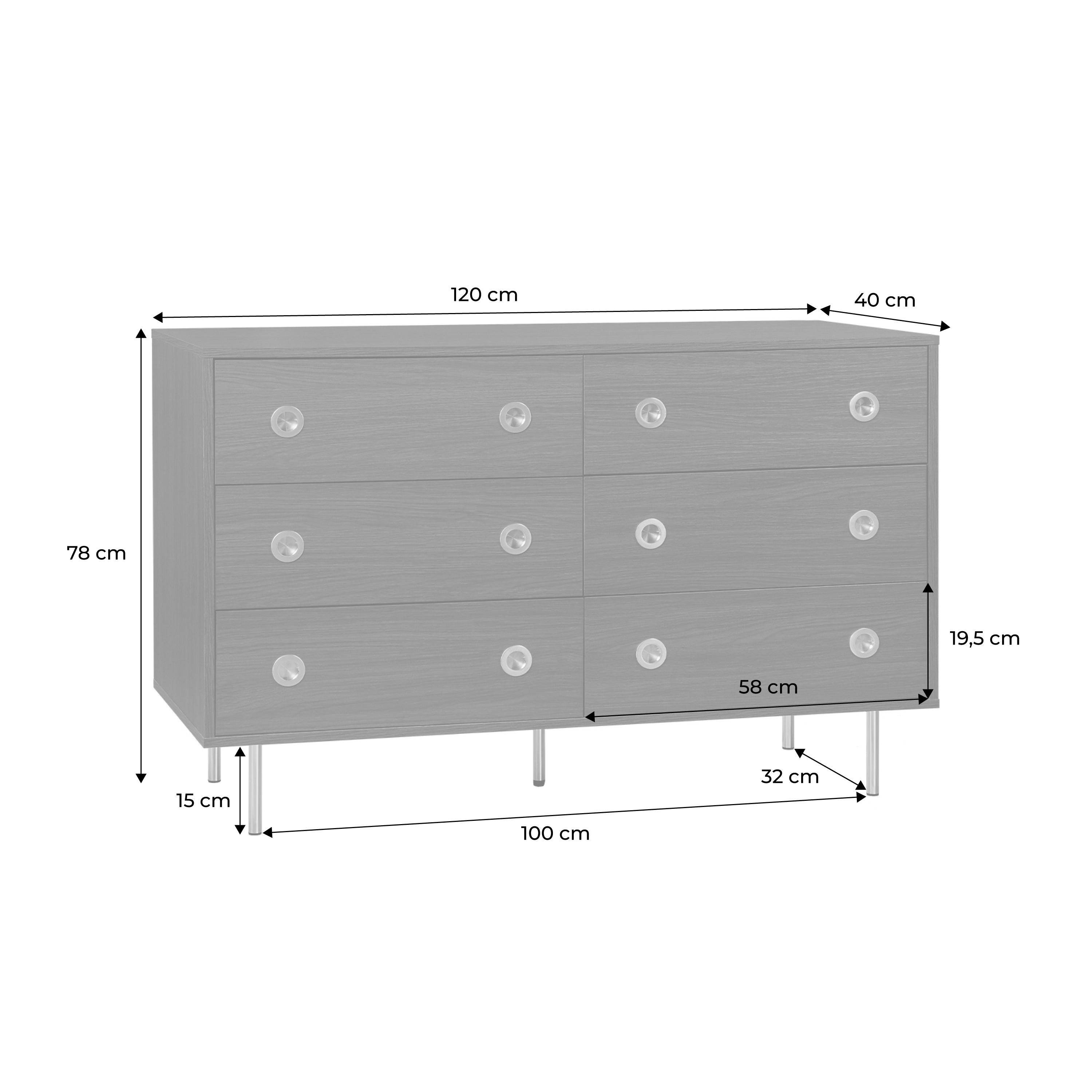 Commode vintage décor bois et acier inoxydable 6 tiroirs