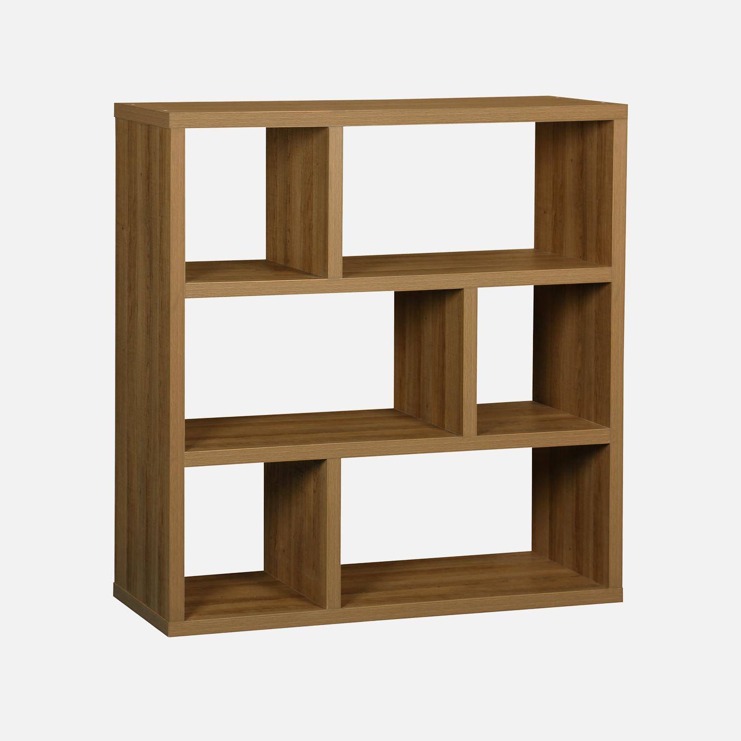 Etagère bibliothèque décor bois asymétrique 3 niveaux 6 compartiments