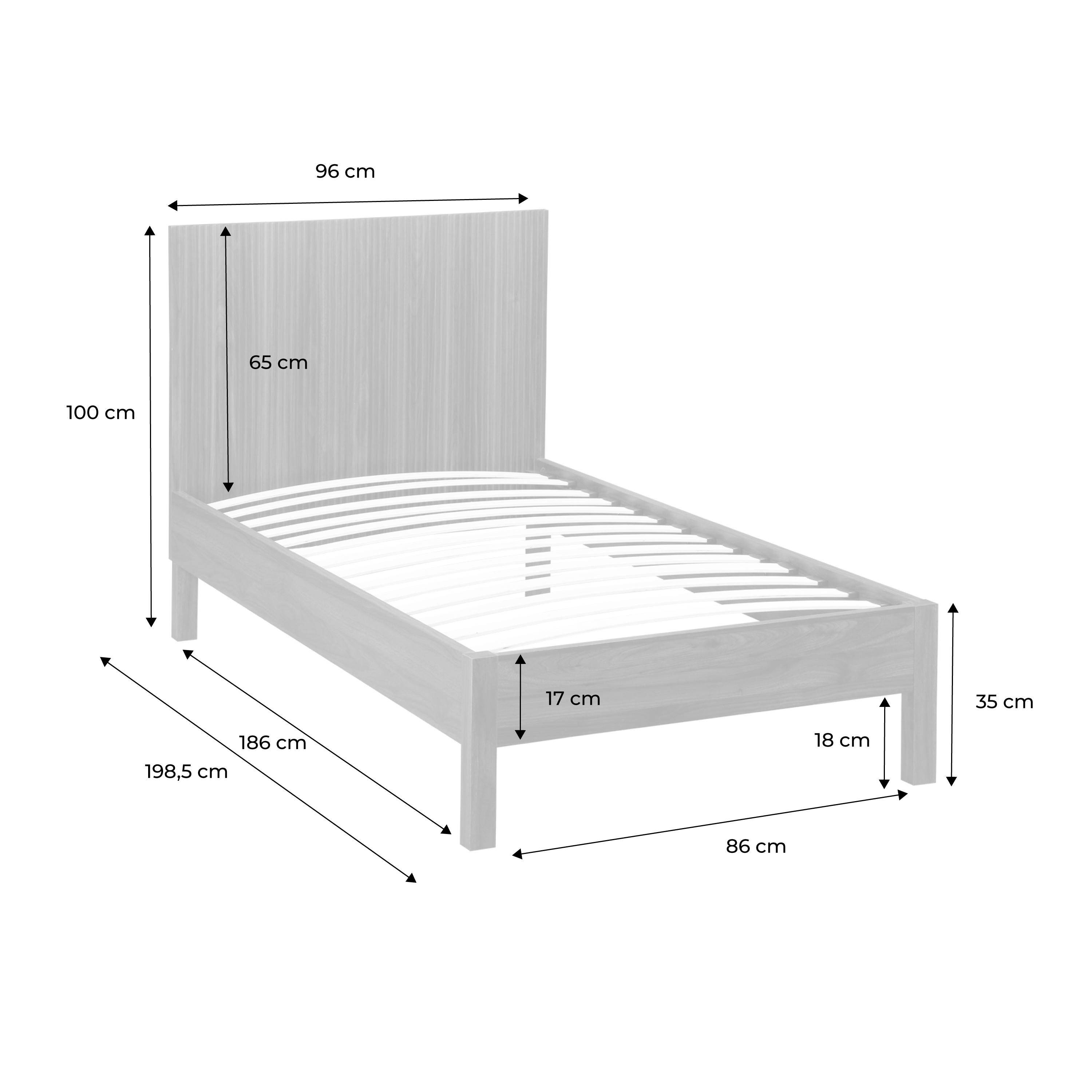 Lit avec sommier à lattes et tête de lit 90x190cm décor bois