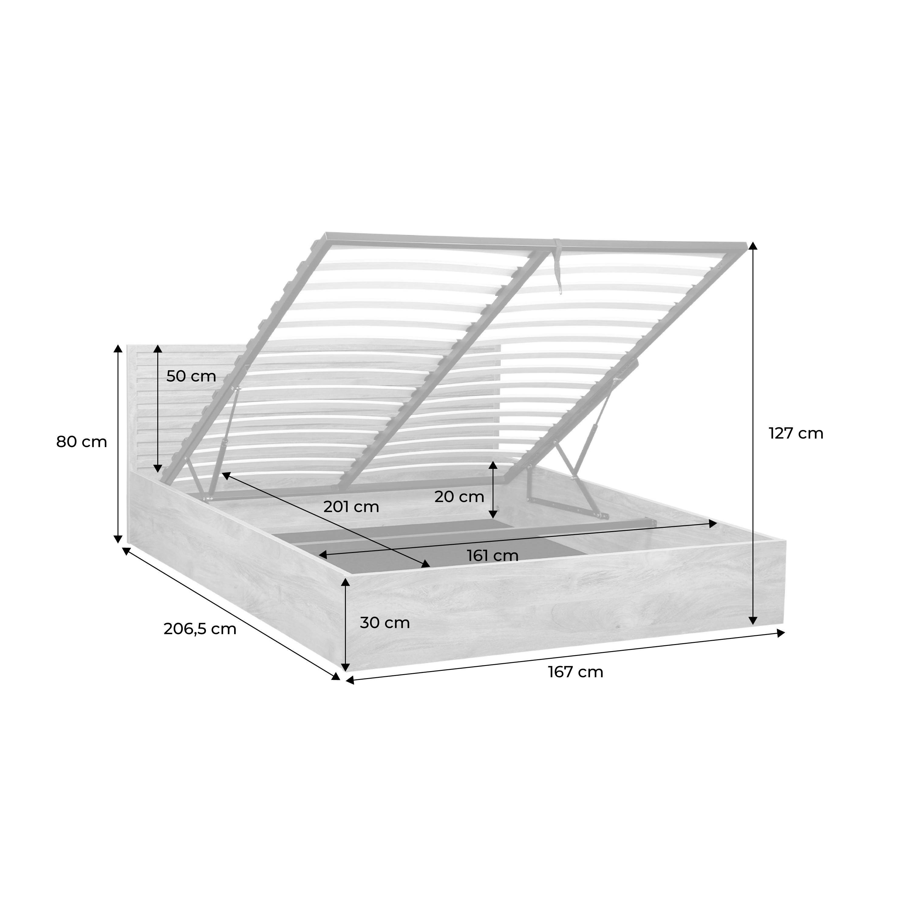 Lit coffre sommier à lattes et tête de lit 160x200cm décor bois