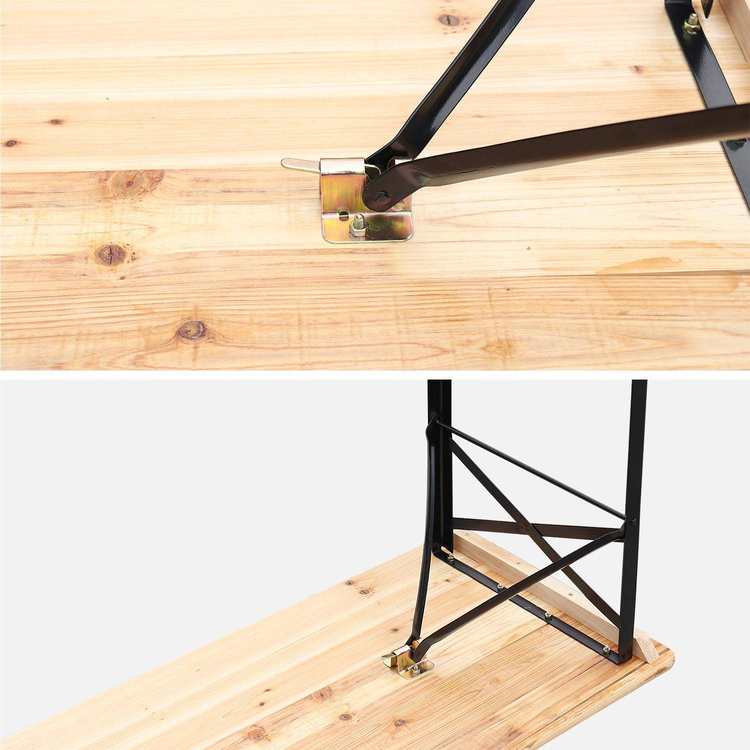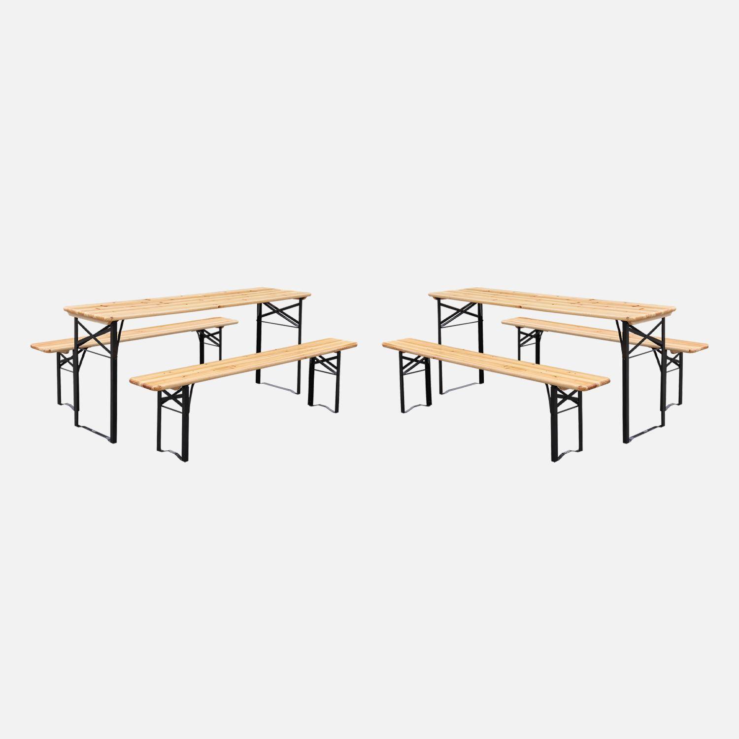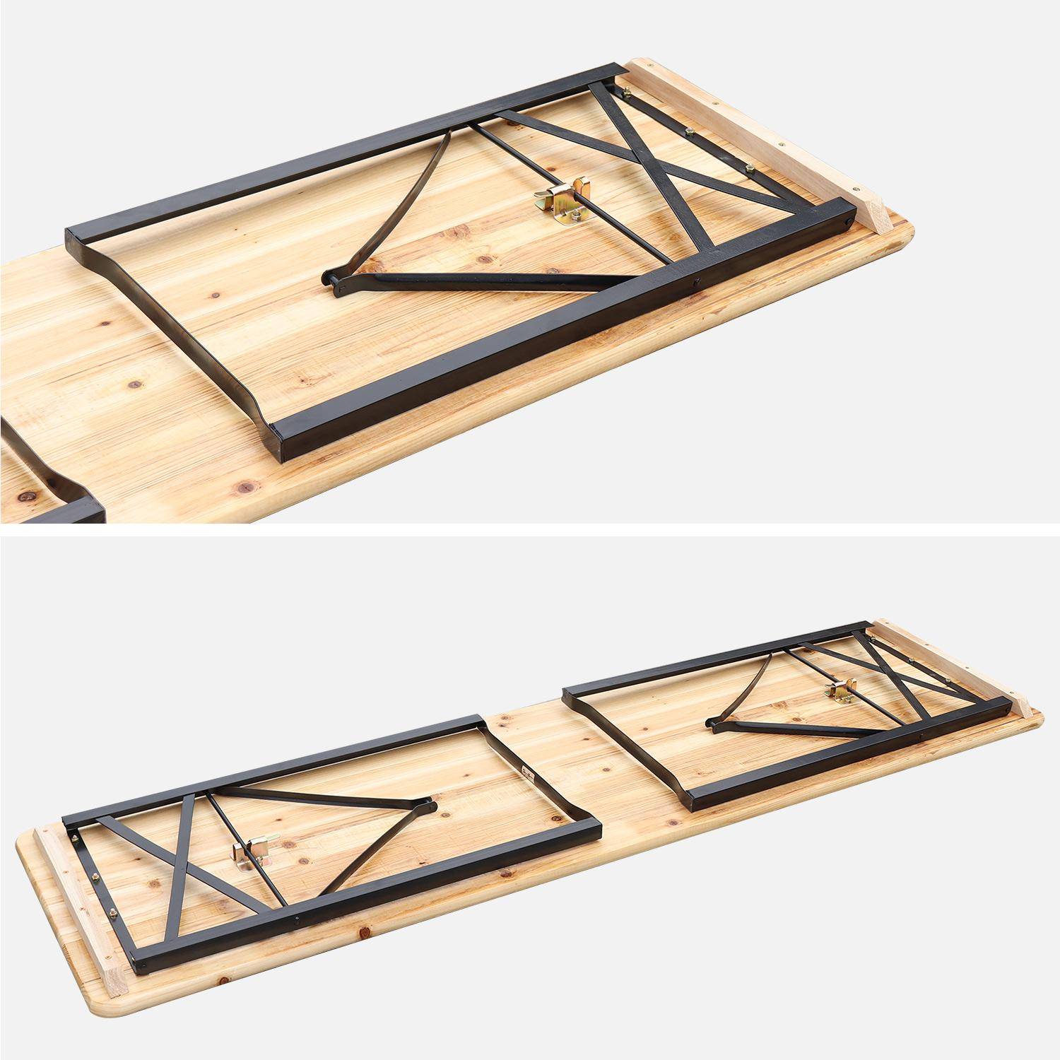 Table de réception pliante bois de sapin + 2 bancs (lot de 2)