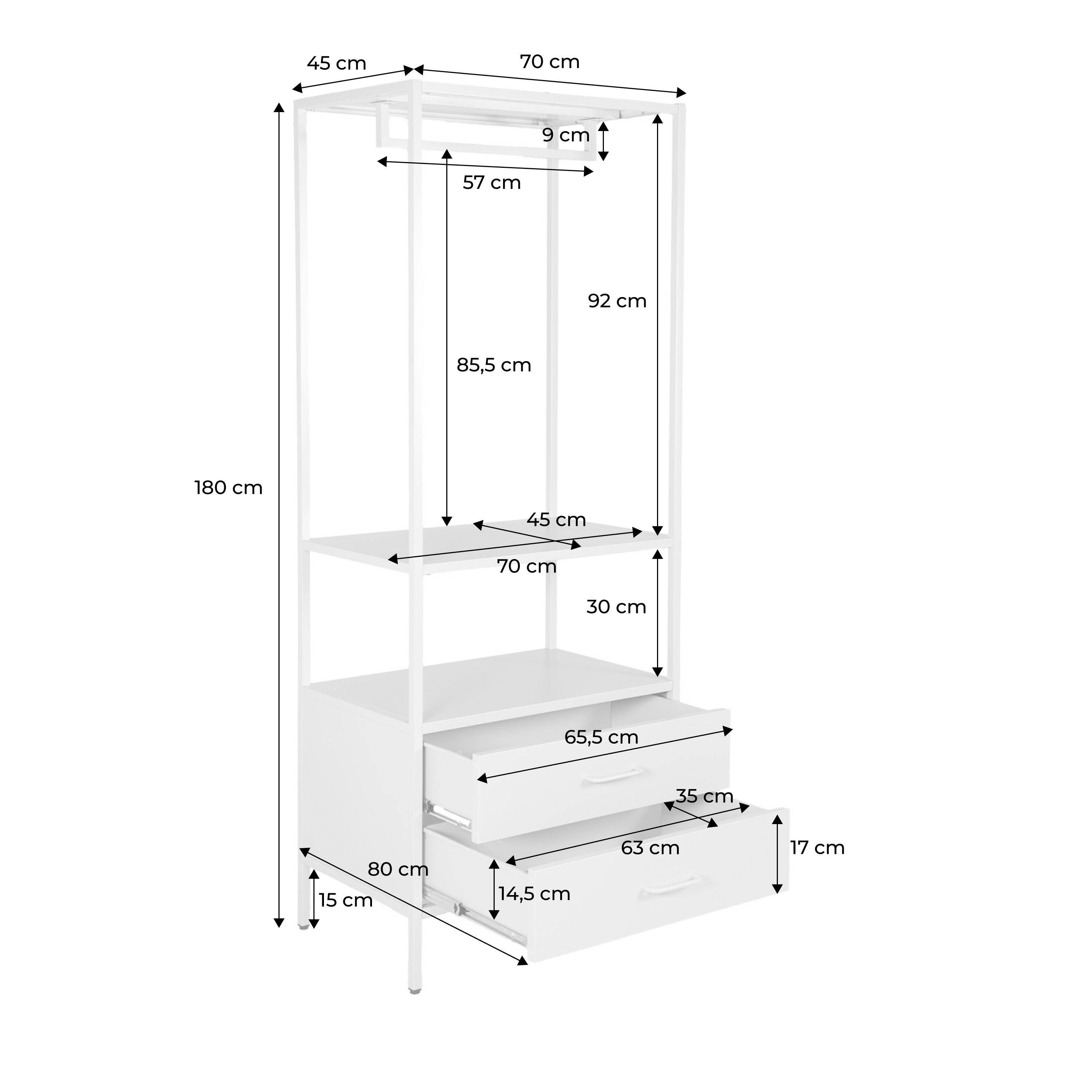 Meuble d'entrée, porte manteau métal avec penderie et 2 tiroirs