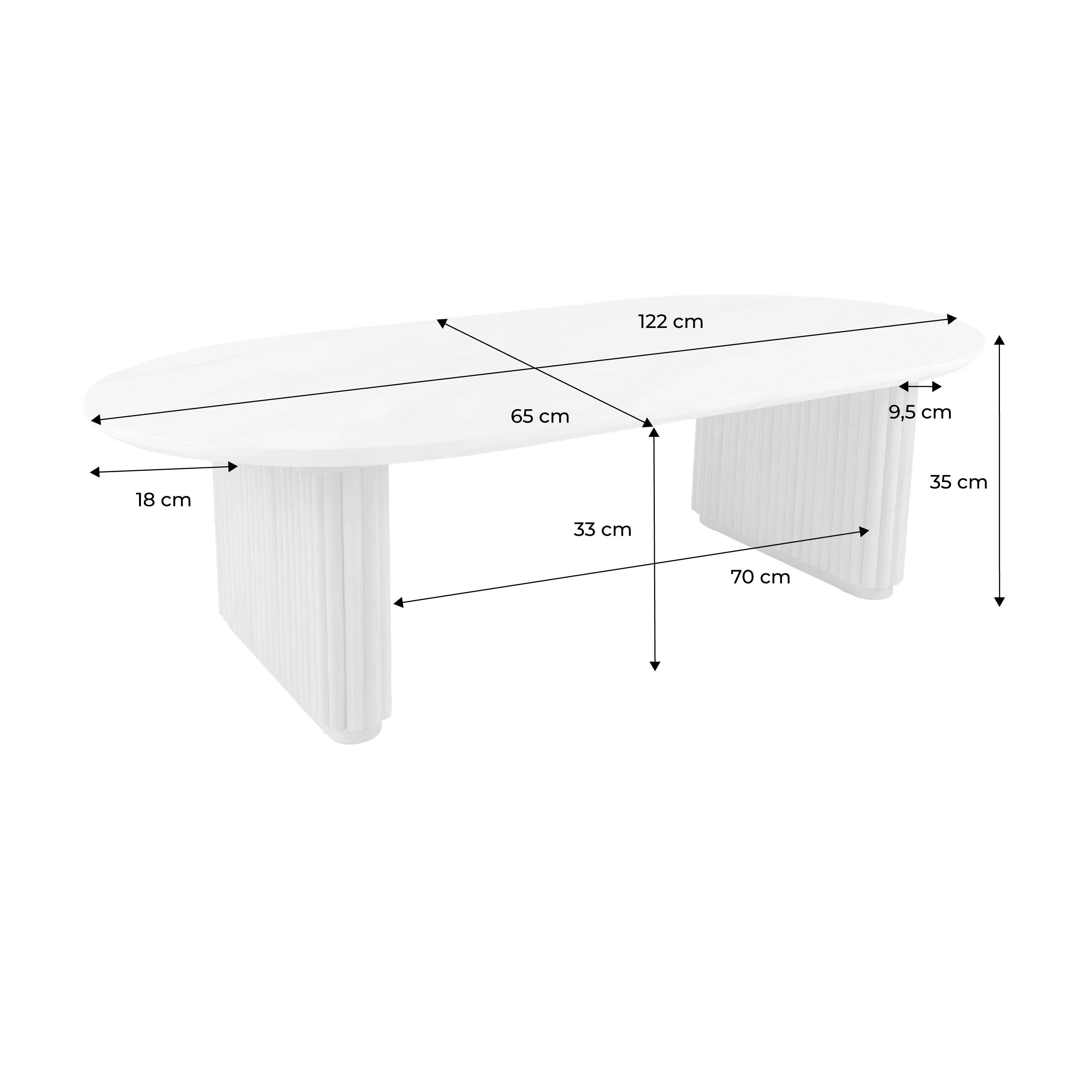 Table basse ovale bois d'hévéa plateau effet pierre