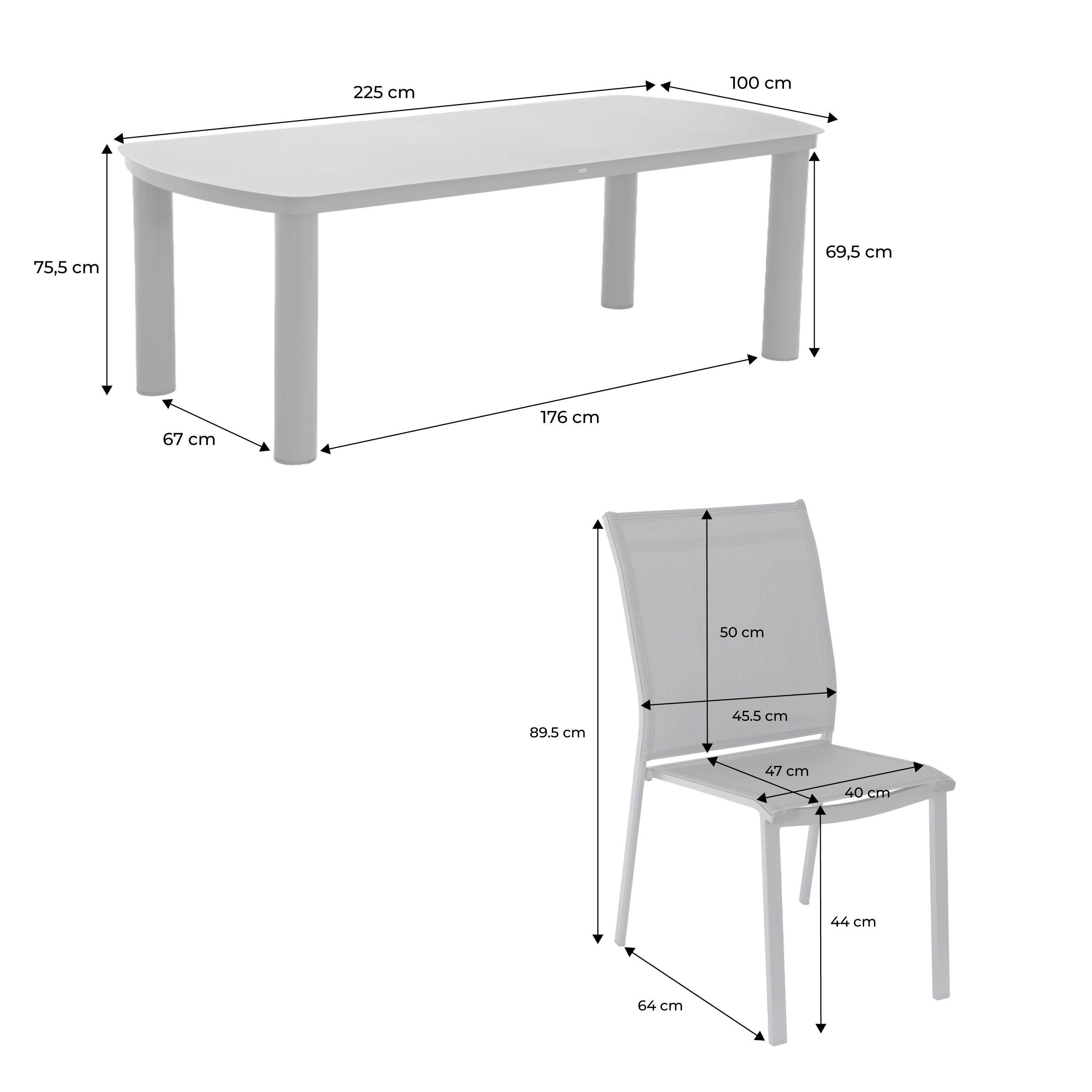 Ce set comprend la table Zaro et 8 chaises Buffalo