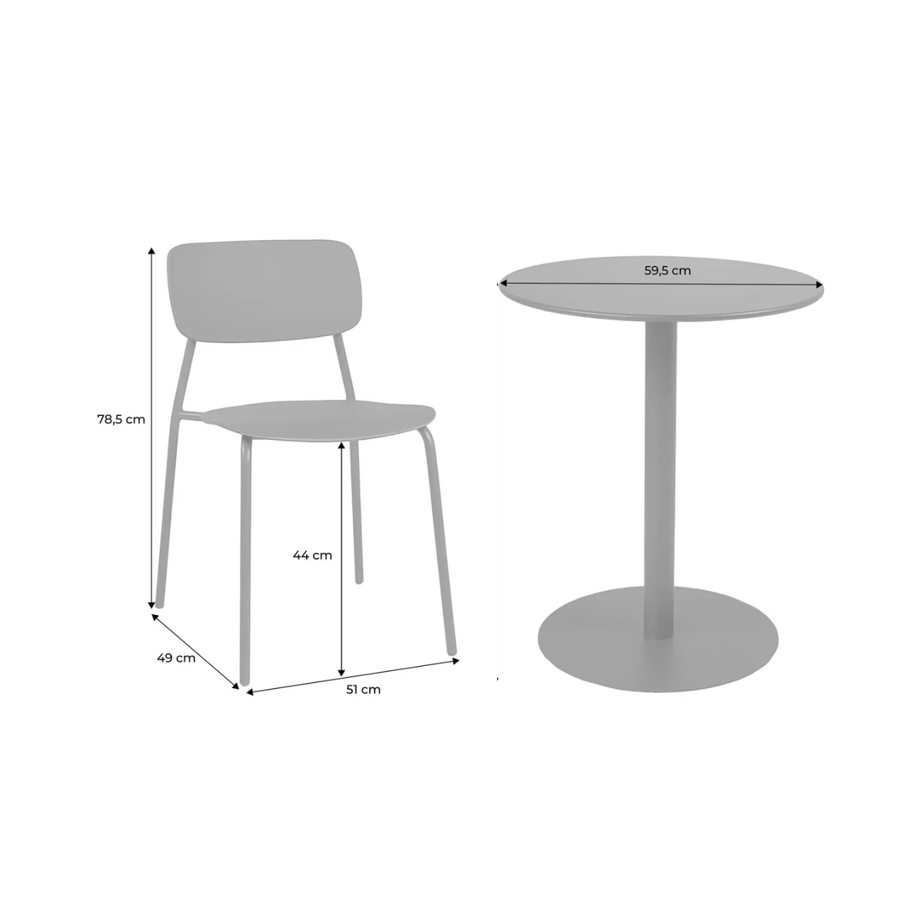 Table de jardin bistrot ronde acier + 2 assises