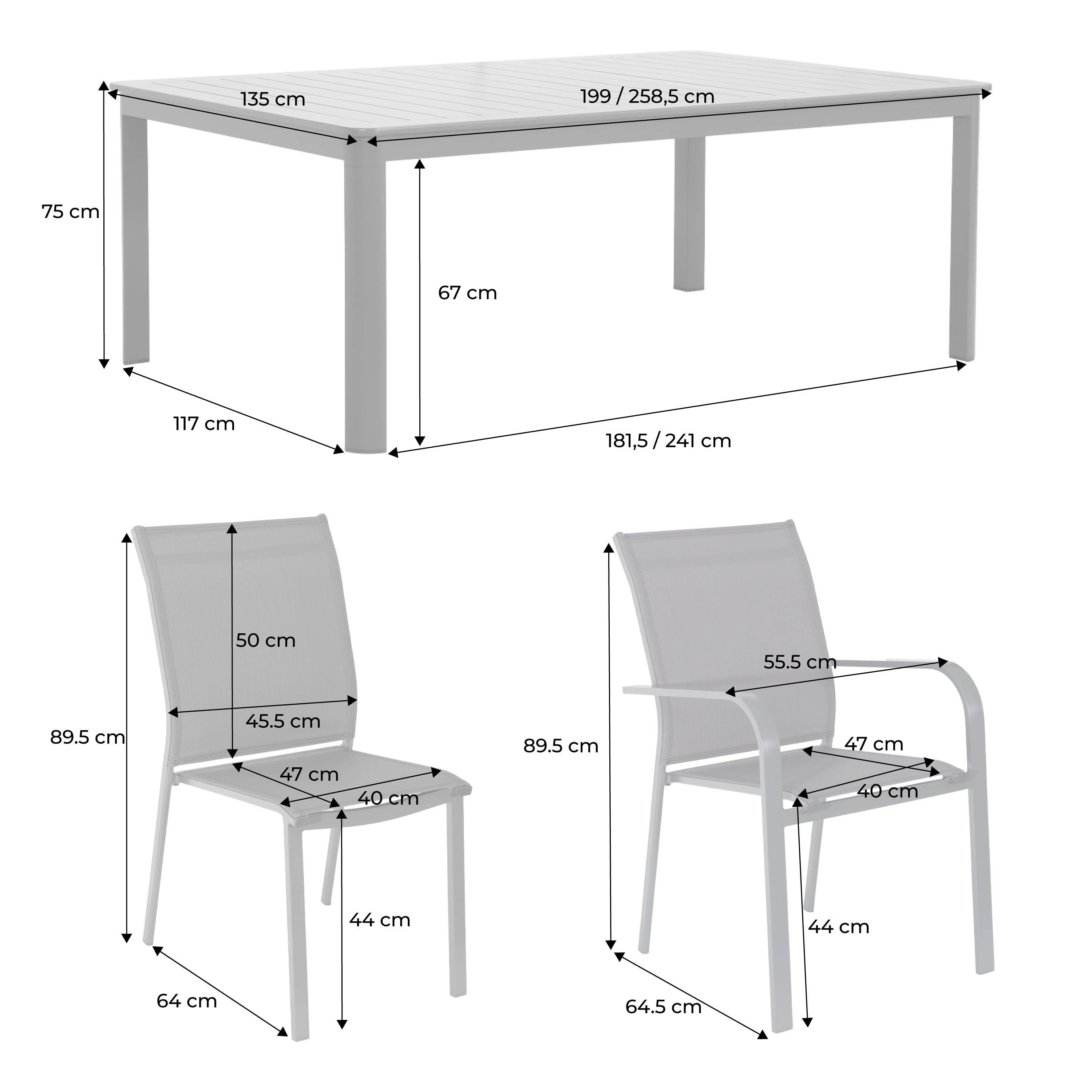 Ce set comprend la table Karo, 8 chaises et 4 fauteuils Buffalo