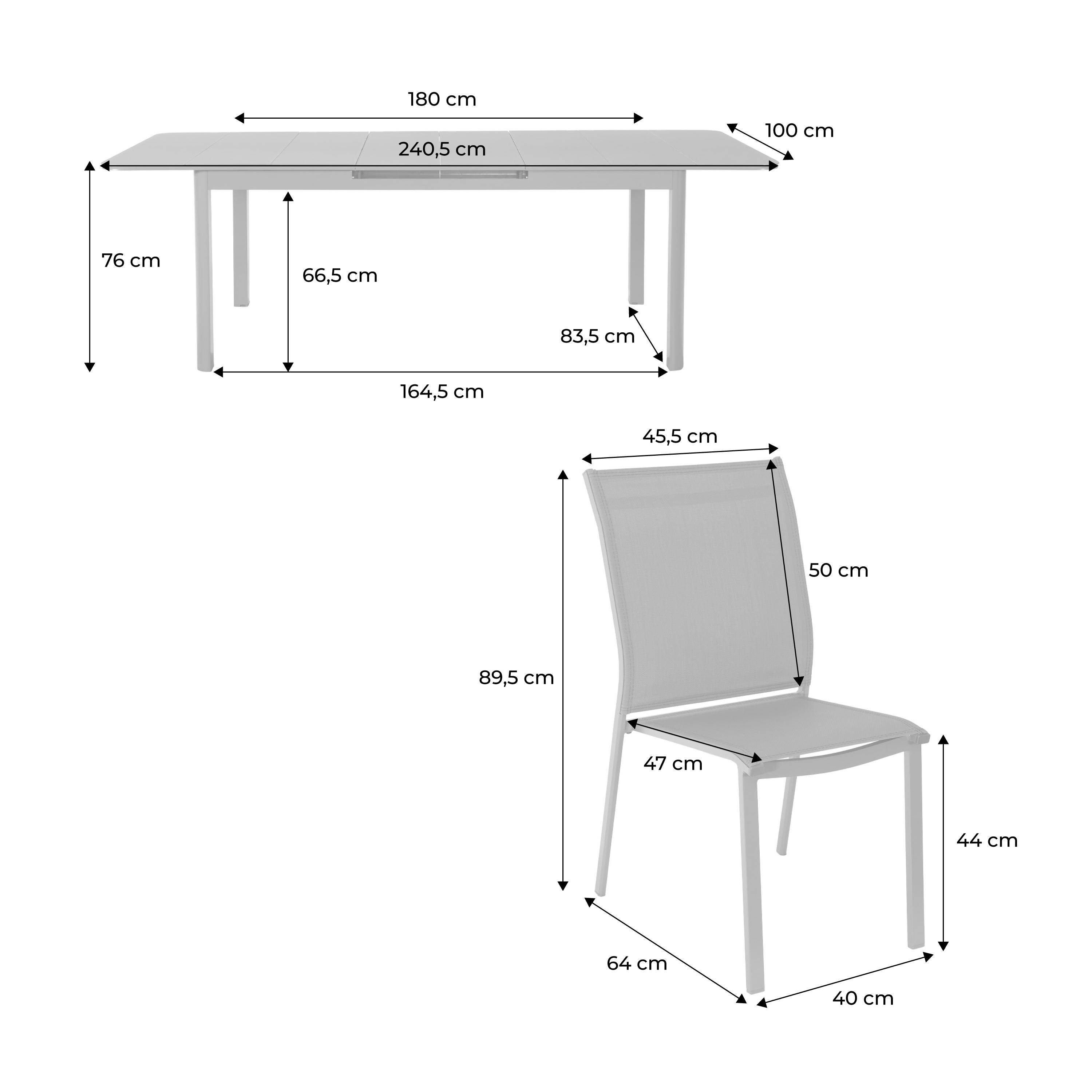 Ce set comprend une table Soria et 8 chaises Buffalo
