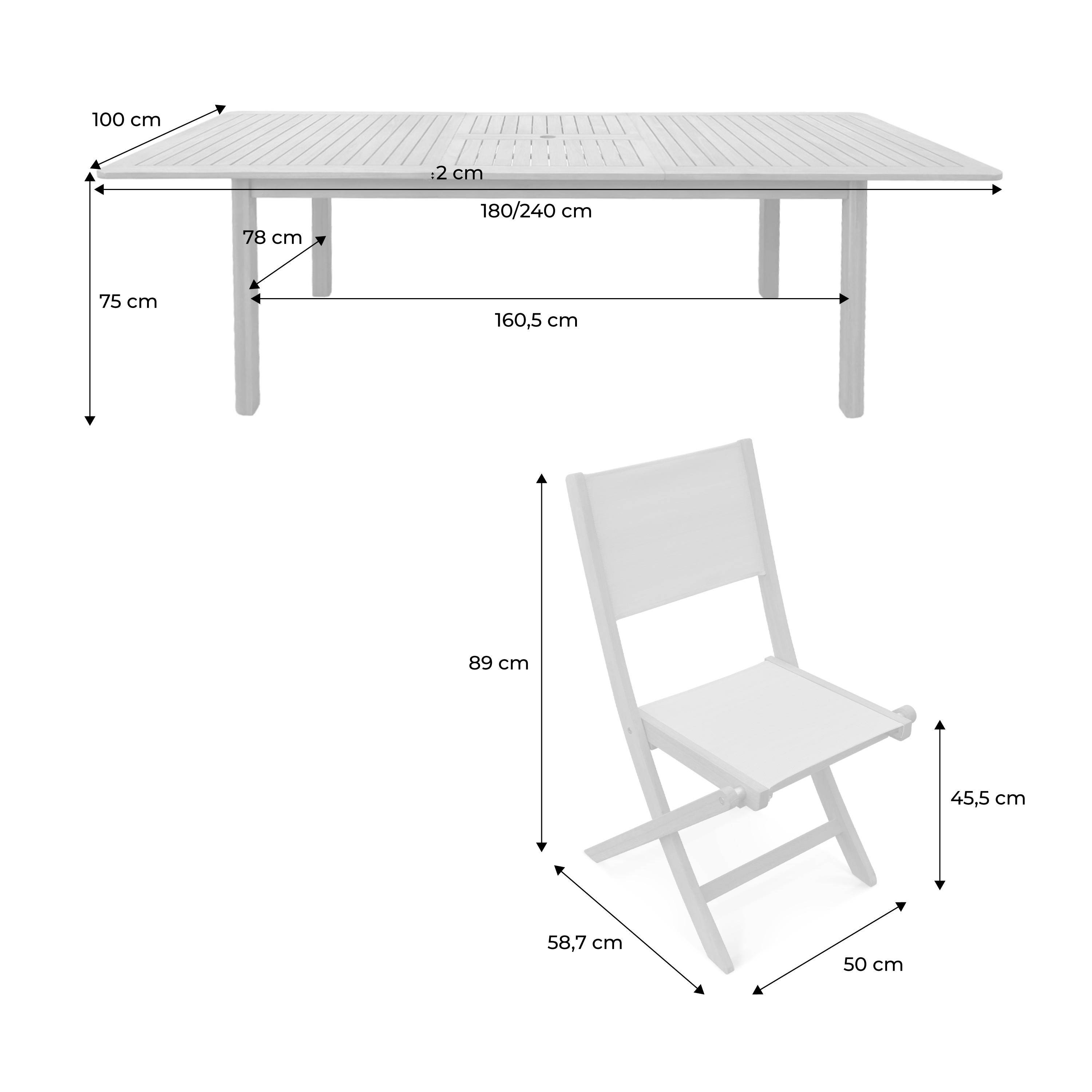 Table de jardin extensible bois d'eucalyptus + 8 assises