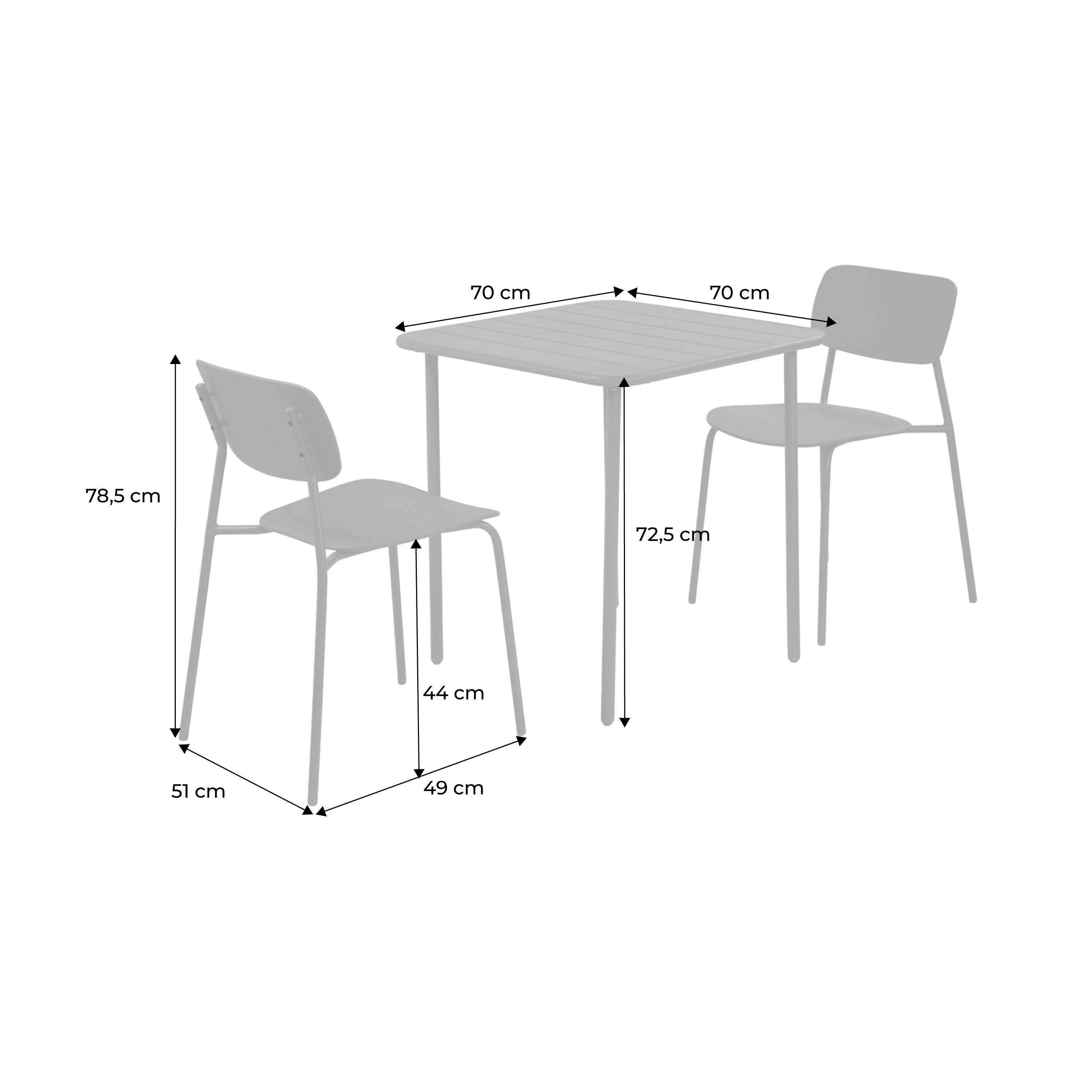 Table de jardin métal + 2 assises terracotta, Amelia + Liva 70 x 70cm Photo1