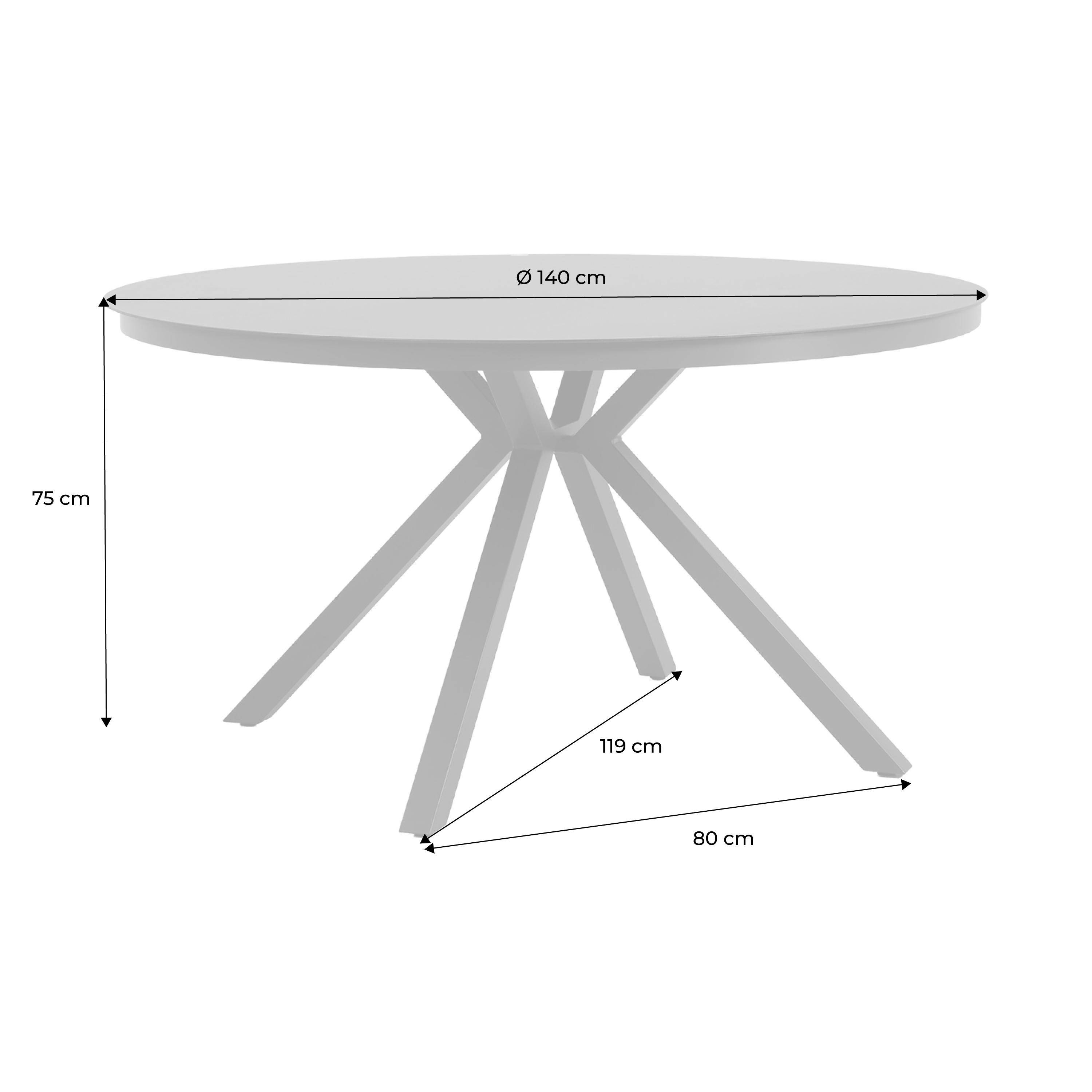 Table de jardin ronde aluminium et verre 6 places